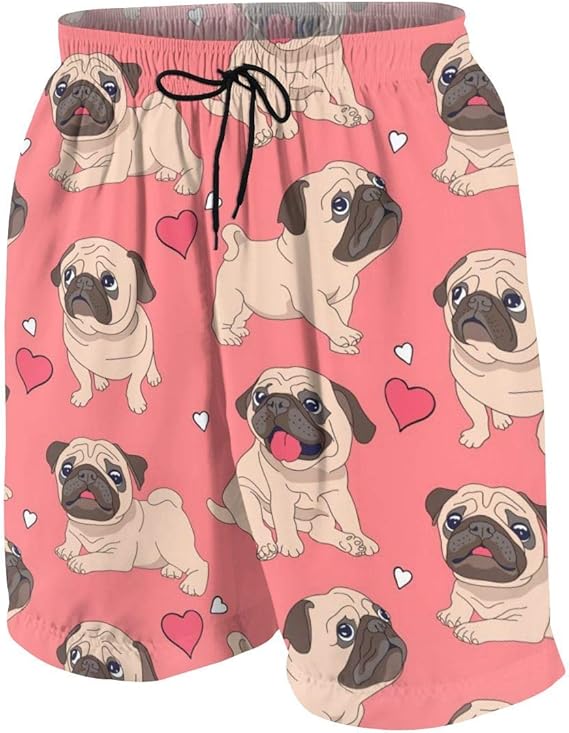 Amazon Co Jp 男の子ティーンビーチショーツスイムトランクス面白い漫画パグ子犬ピンクボードショーツパンツメッシュライニング付き 服 ファッション小物